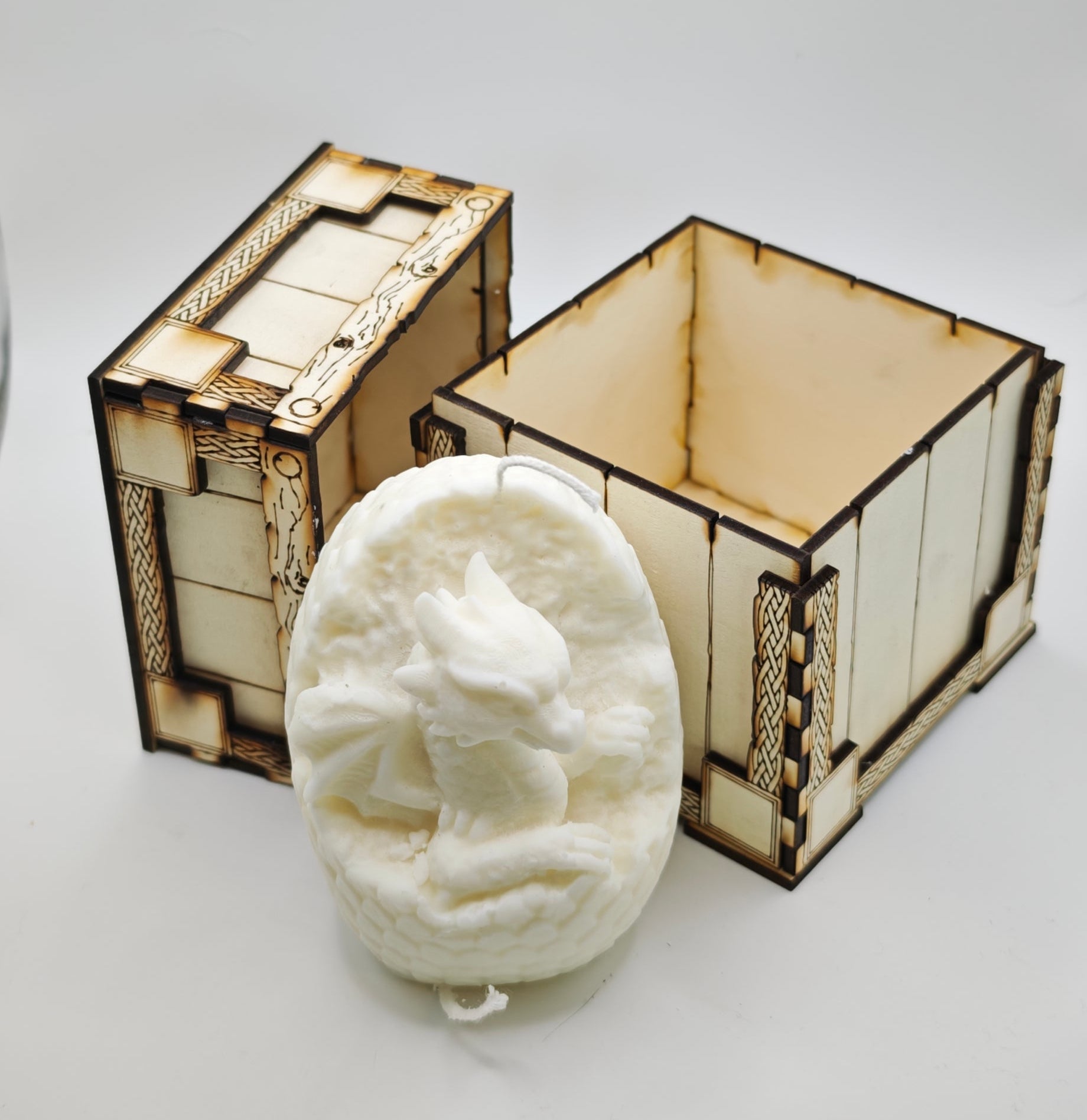 Stearinlys i drageboks med sandalwood duft